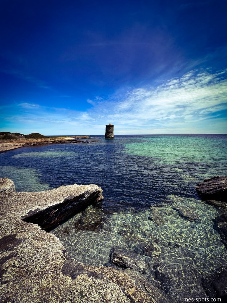 3. Se baigner au pied de la Tour Santa Maria à Maccinagio , apres un chemin que l’on suit depuis la plage de Tamarone, passer la chapelle sta maria et continuer jusqu’à l’anse où la tour affleure l’eau cristalline. La tour a été endommagée par les anglais de Nelson ce qui lui donne encore plus de charme. Je me souviens d’avoir trouvé des oeils de saint lucie le long du rivage.